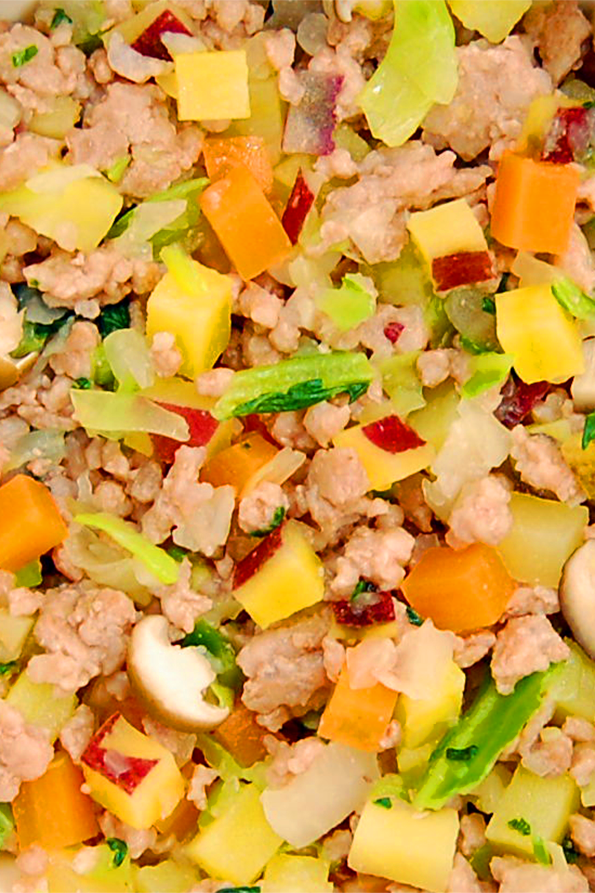 豚ミンチの旨みに、さつまいもとかぼちゃの自然な甘みを合わせ、体を内側からぽかぽか温めます。