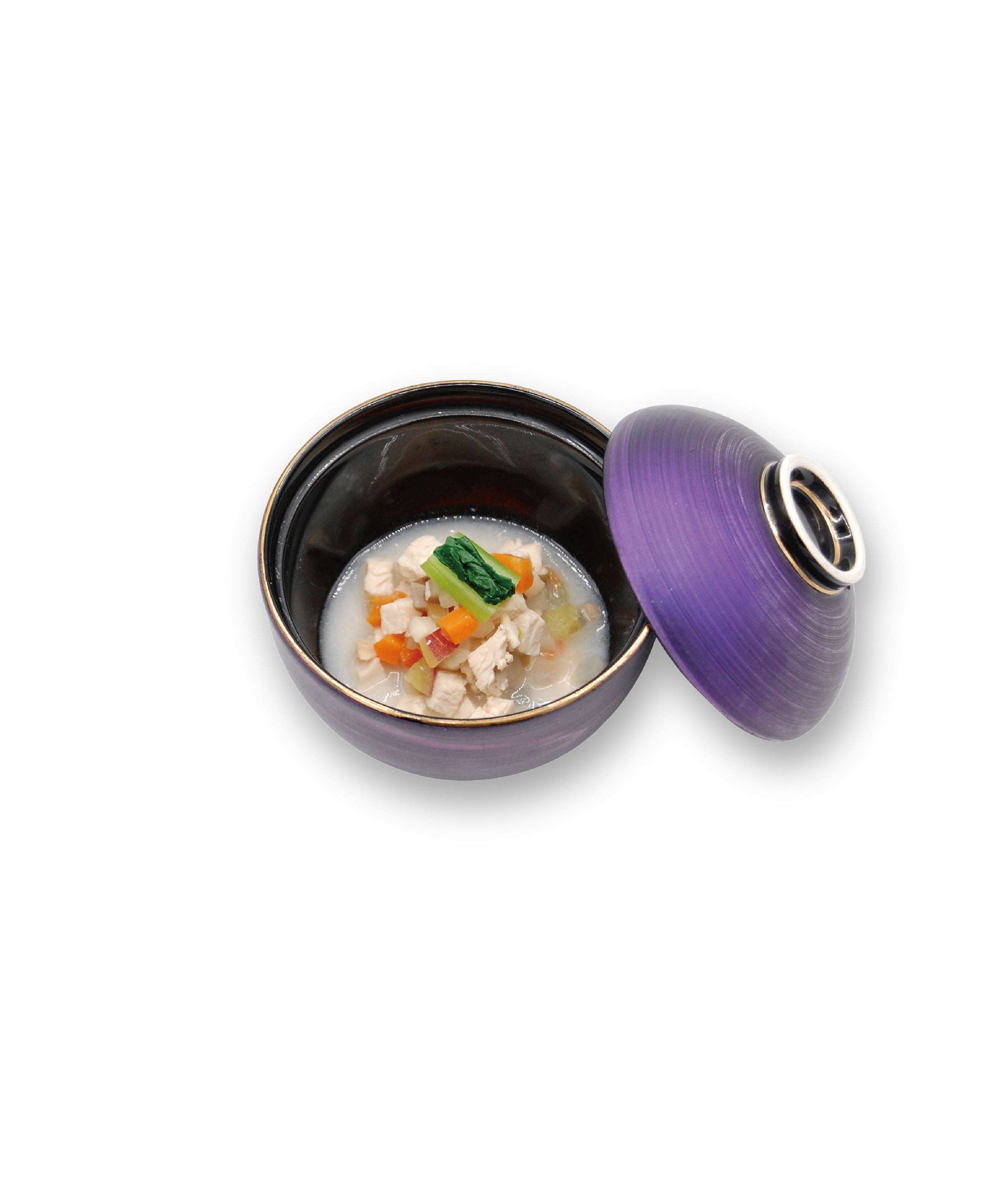 国産シロサバフグ、木綿豆腐、えのき、マグロ粉、だし汁(かつお節、昆布)、長芋、人参、かぶの葉 |