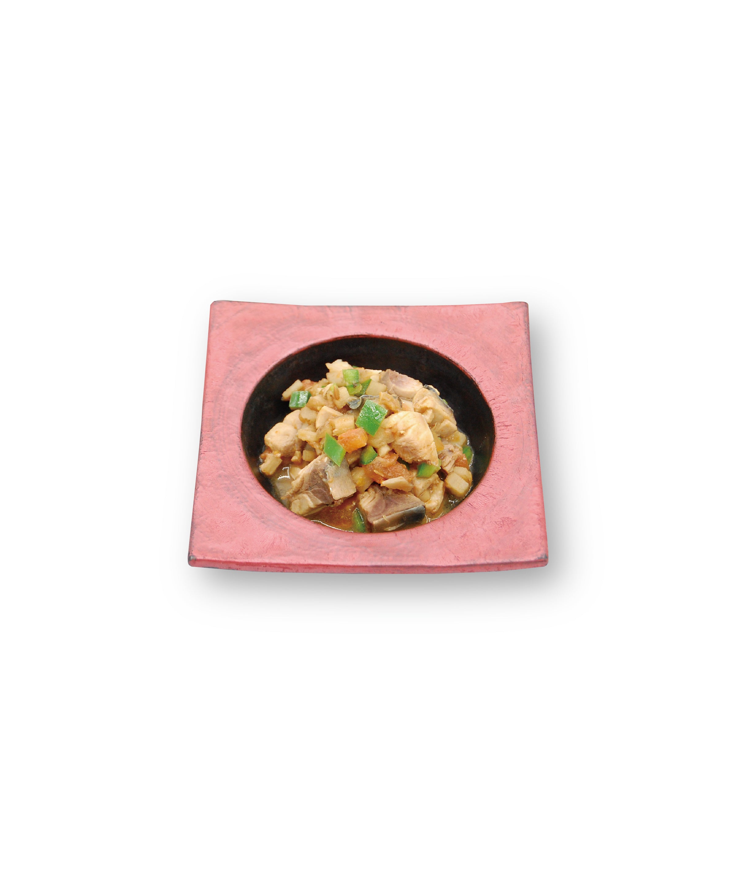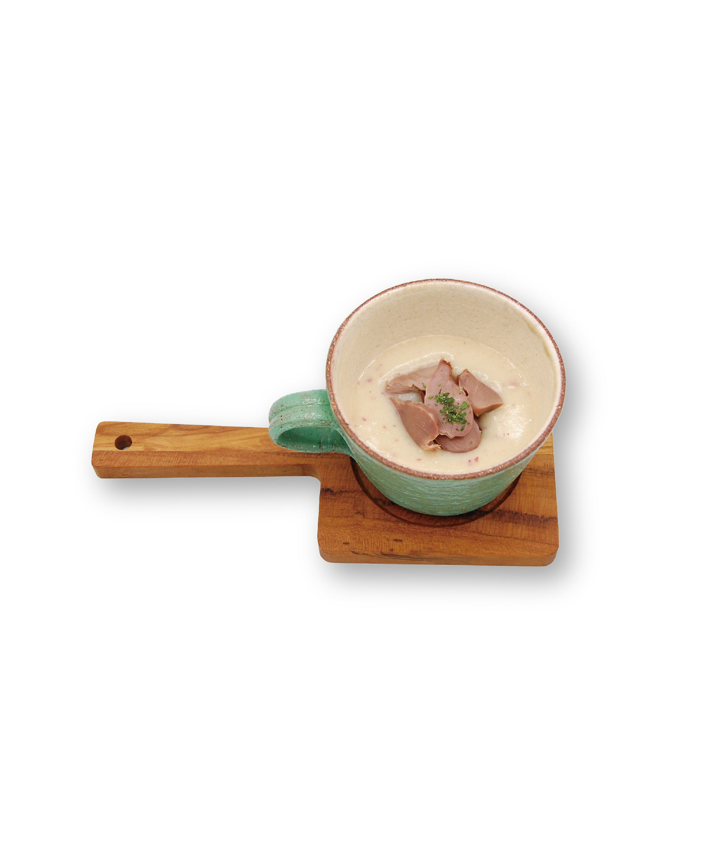 国産砂肝、さつま芋、白ごはん、スープ(鶏ガラ)、豆乳、パセリ |