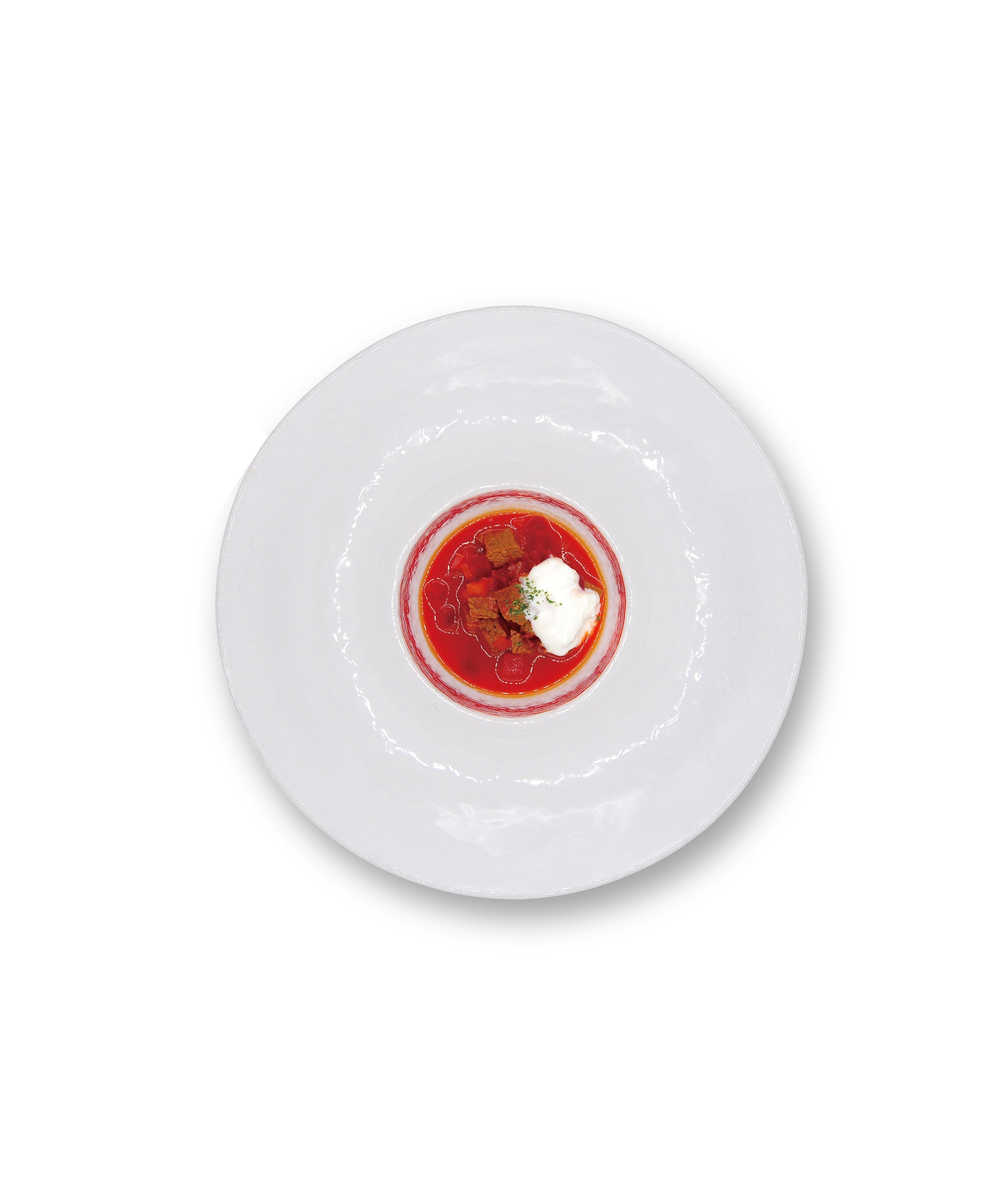 国産牛すね肉、ビーツ、キャベツ、人参、トマトジュース、リンゴ酢、オリーブ油、スープ(鶏ガラ)、ヨーグルト、パセリ |