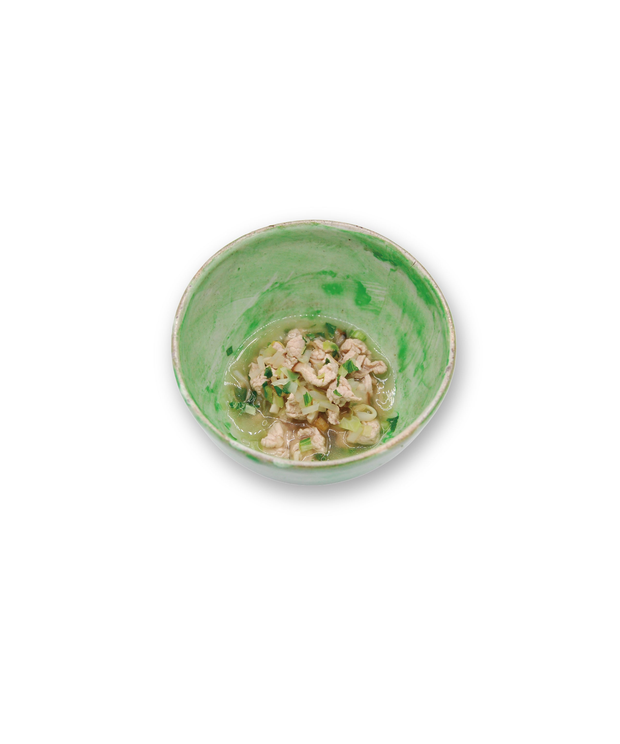 国産豚ミンチ肉、キャベツ、ごぼう、もやし、しめじ、だし汁(かつお節、昆布)、かぶの葉 |