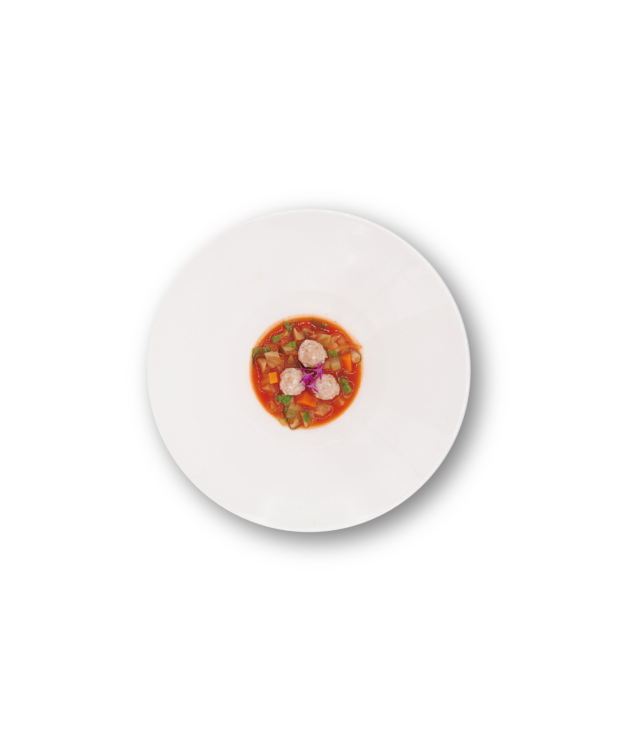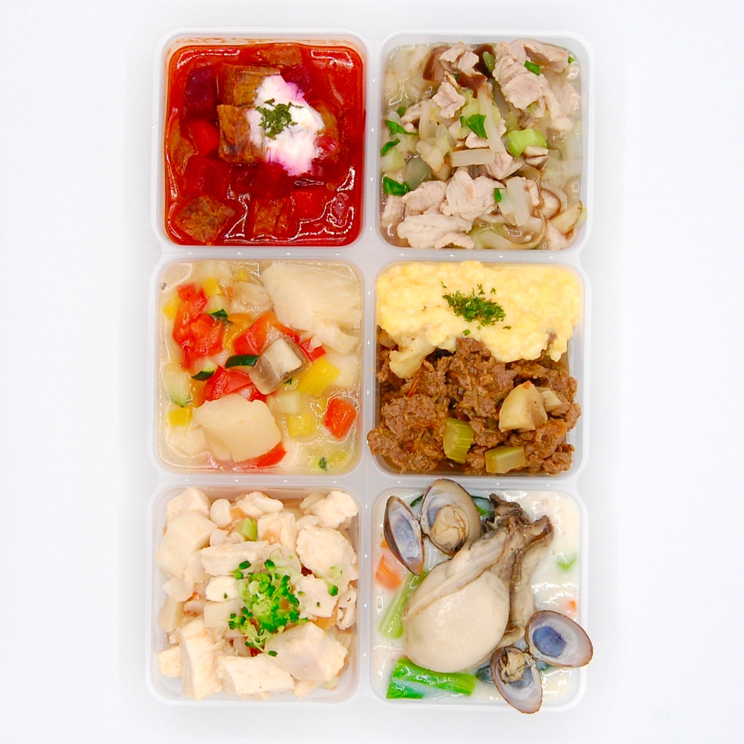 国産鶏むね肉、木綿豆腐、キャベツ、れんこん、人参、セロリ、しめじ、スープ(鶏ガラ)、トマトジュース(無塩)、パセリ |